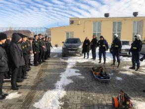 Вторая часть мероприятия прошла на открытом воздухе. Здесь сотрудники аварийно-спасательного центра Астрахани подготовили для студентов практическое занятие. Спасатели продемонстрировали им экипировку и основные типы аварийно-спасательных средств, приспособлений и оборудования.
