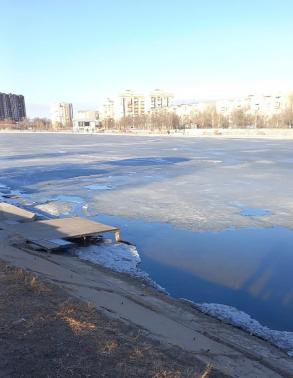 Толщина льда на Лебедином озере – 10см.